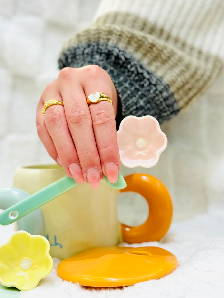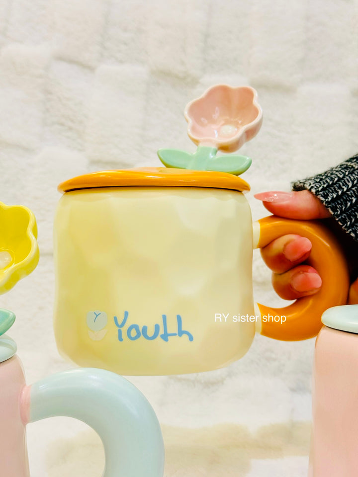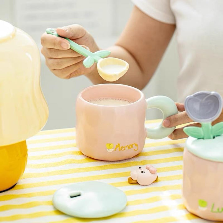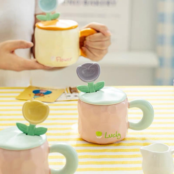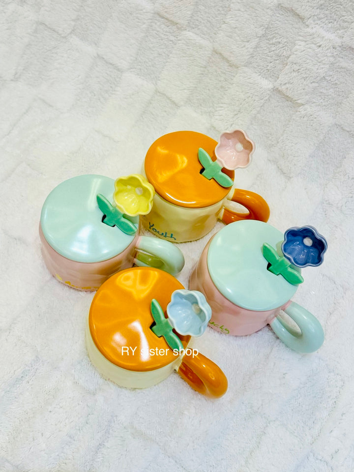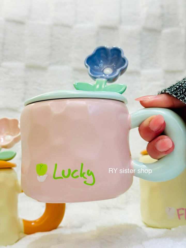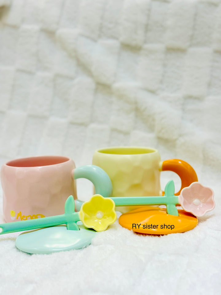 كوب كبير كيوت مع ملعقة وردة وغطاء