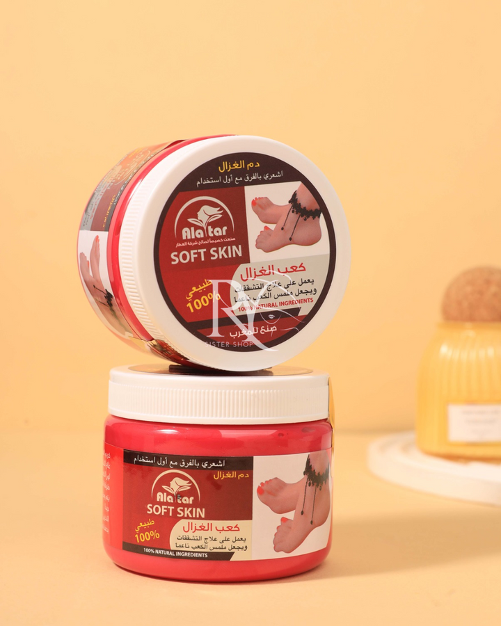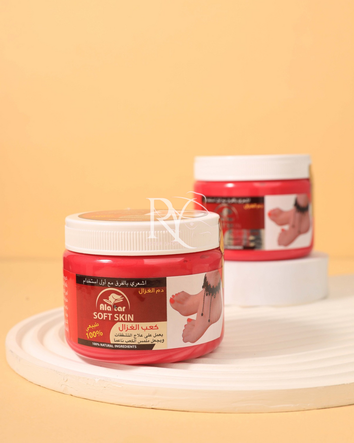 امنحي قدميك العناية التي تستحقها مع كعب الغزال، المنتج الطبيعي المصمم لترطيب وتوريد القدمين، وإعادة النعومة والحيوية للبشرة الجافة والمتشققة.