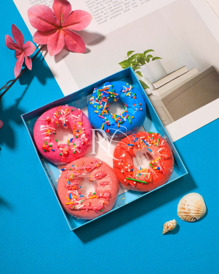 تخيل دوائر صغيرة مليئة بالألوان الزاهية، كل واحدة مثل قطعة دونات صغيرة تنفجر بالألوان والمرح عند وضعها في الماء. تتحول إلى فقاعات غنية بالرائحة، تملأ حمامك بلحظة من البهجة والانتعاش، مع ملمس ناعم يعتني ببشرتك. الألوان المبهجة ترفع المزاج، بينما الرائحة تعطي إحساساً بالراحة والترف